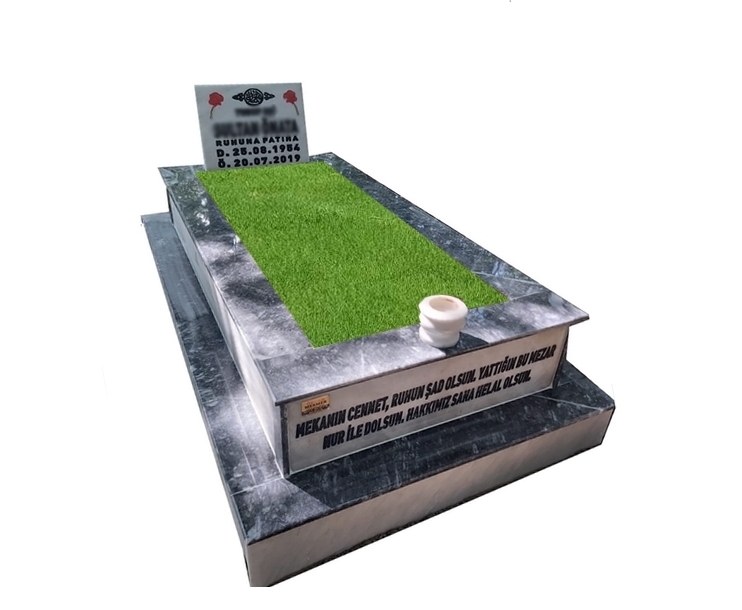 EM11- Taban Kaplamalı Siyah Beyaz Mermer Mezar